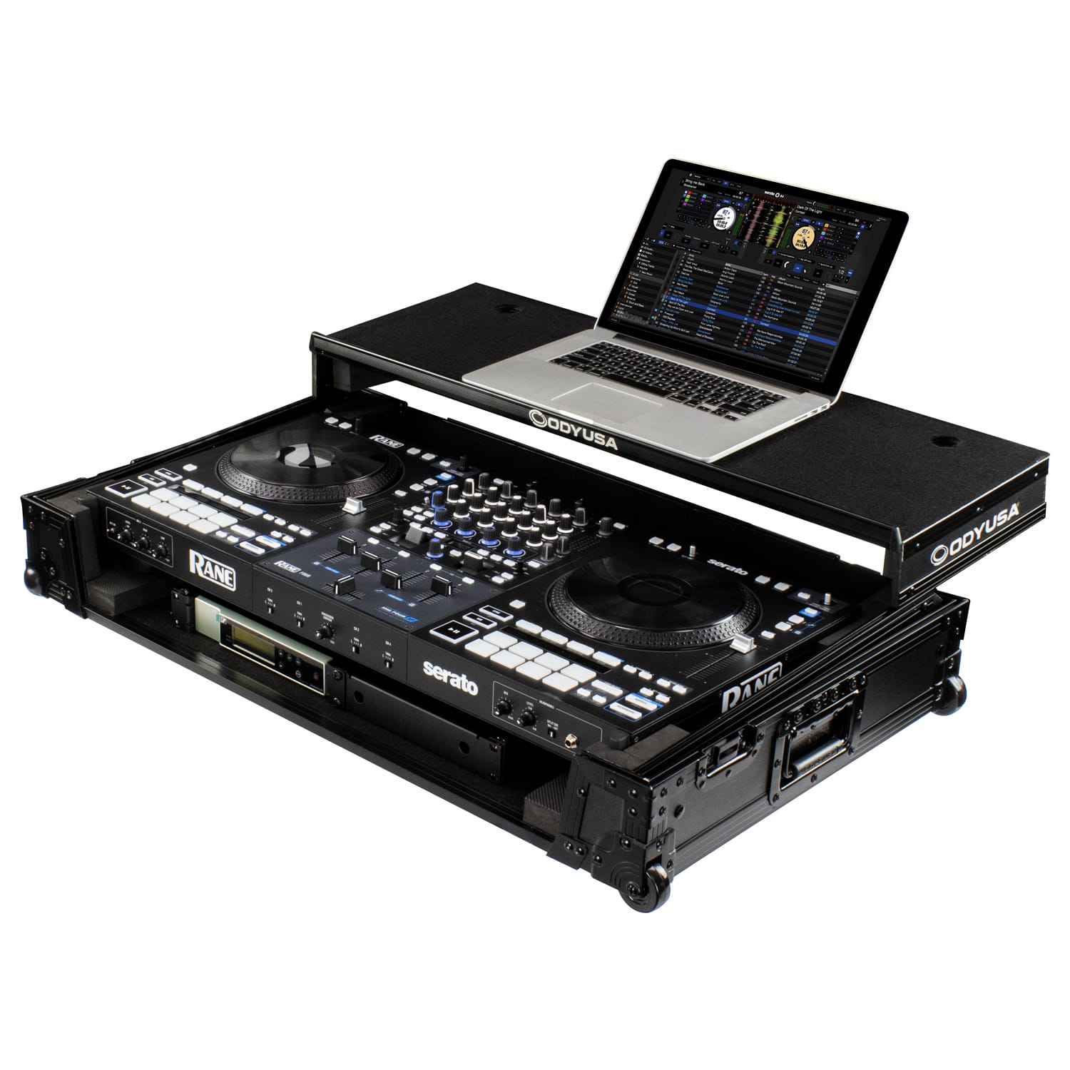 Odyssey FZGSRANE4W1BL is a high-performance flight case specifically built for the RANE FOUR DJ controller. Designed as part of Odyssey’s Black Label™ series, this case features an all-black anodized and powder-coated hardware finish, delivering rugged protection and a sleek, professional look for DJs on the move.